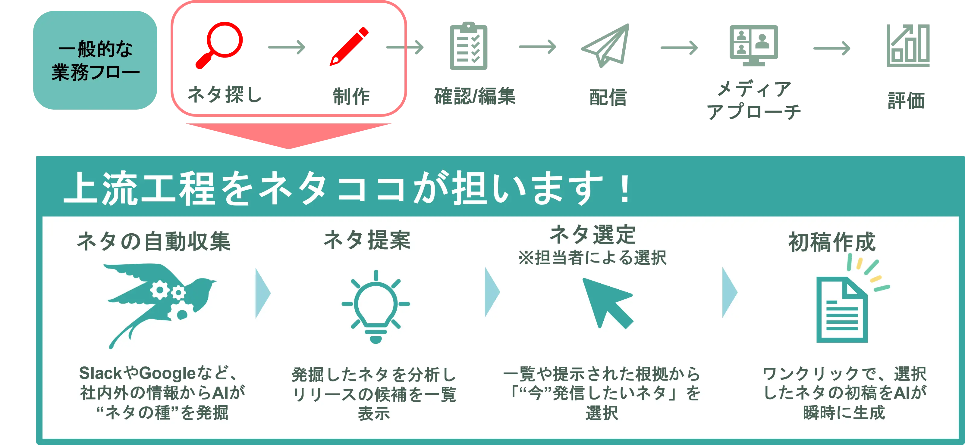 広報担当者は、AIが見つけたネタの中から「今、何を発信すべきか」という戦略的な判断や、メディア各社との信頼関係の構築といった、『人にしかできない創造的な活動』に集中できる環境を実現します。